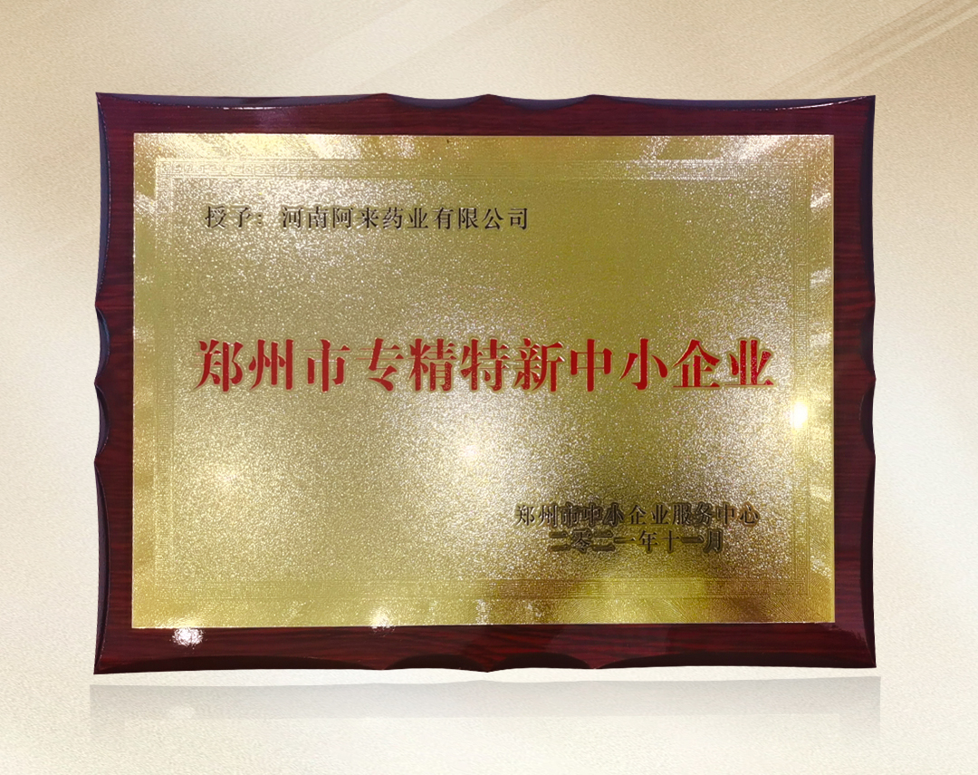 2021年11月,阿來(lái)藥業(yè)被評(píng)為鄭州市“專精特新”中小企業(yè)